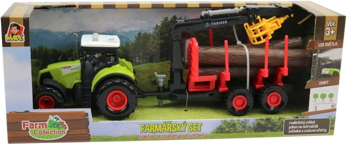 Tento zelený traktor MaDe s prívesom a ramenom je skvelou hračkou pre všetkých malých milovníkov poľnohospodárskych strojov. Po stlačení tlačidla sa aktivujú realistické zvuky a svetelné efekty, ktoré podporia predstavivosť a zábavu pri hre. Český box poteší ako darček.