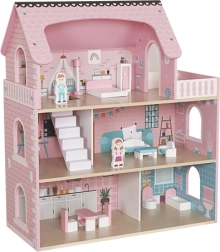 Súčasťou je kompletná nábytková výbava, takže deti môžu okamžite zariaďovať izbičky a rozvíjať fantáziu. Výrobok je v súlade s európskymi normami a je vyrobený z ekologického dreva, čo z neho robí zodpovednú voľbu pre rodinu aj planétu.