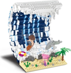 Model kombinuje detaily ako mohutná vodná vlna, surfer na doske, hravý delfín a piesčitá pláž s palmou. Nechýbajú dve minifigúrky, ktoré dodajú scéne príbeh a akciu – ideálne na hranie aj ako dekorácia.