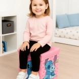 Udržte poriadok štýlovo s úložným boxom Cozy Noxxiez s motívom STITCH. Vďaka pevnému veku poslúži aj ako pohodlná taburetka a vďaka skladacej konštrukcii ho rýchlo odložíte, keď práve nie je potrebný. Ideálne na plyšáky, stavebnice, autíčka aj knihy.