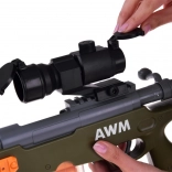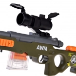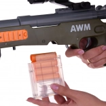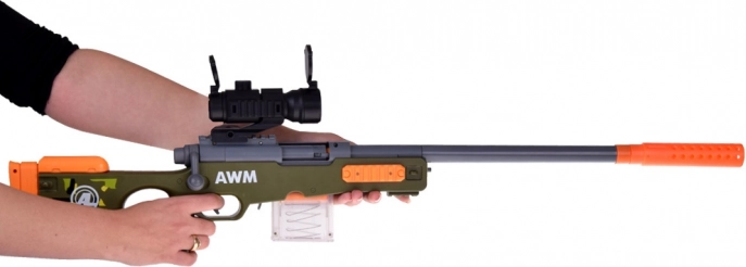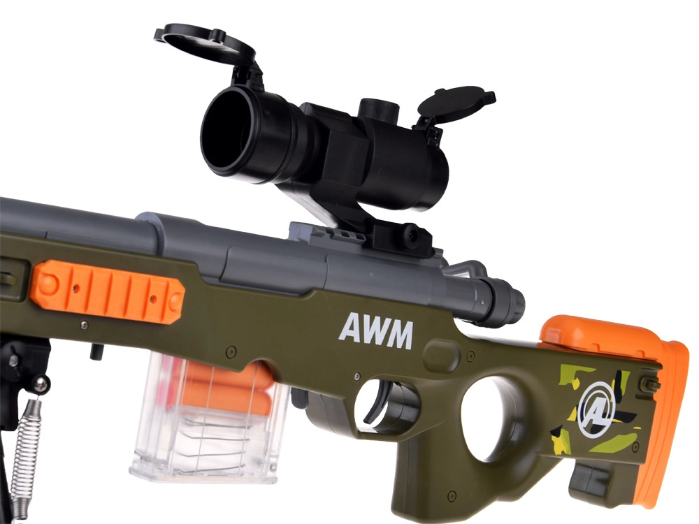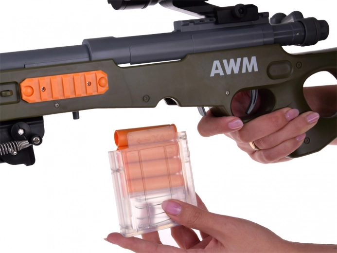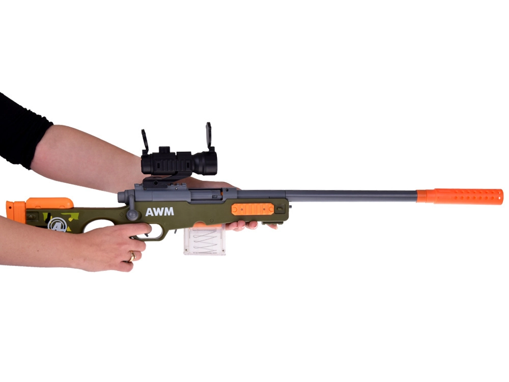Veľká detská sniper puška na penové náboje prináša pôsobivo realistický zážitok. Po každom prebíjaní z komory vypadne „nábojnica“ ako pri skutočnej zbrani, čo dodáva hre autentickosť. Puška je kompletne z plastu, takže je ľahučká a dobre sa drží, a vďaka tomu si deti môžu užívať zábavu celé hodiny.