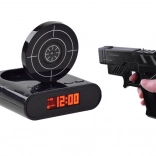 Spríjemnite si ranné vstávanie originálnym riešením: budík s pištoľou a terčom. Po zazvonení stačí zamieriť a „vystreliť“ na terč, aby sa alarm vypol. Ponúka dva herné režimy, možnosť nahratia vlastného alarmu a čitateľné LCD. Možné napájanie batériami AA alebo cez micro USB (kábel nie je súčasťou). Skvelá zábava aj funkčné prebudenie v jednom.