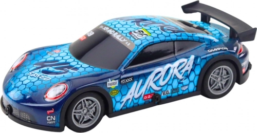 RC závodné auto 27 MHz so svietiacou karosériou, modré. Odolné materiály, jednoduché ovládanie vpred/vzad a doľava/doprava. Zábava doma aj vonku.