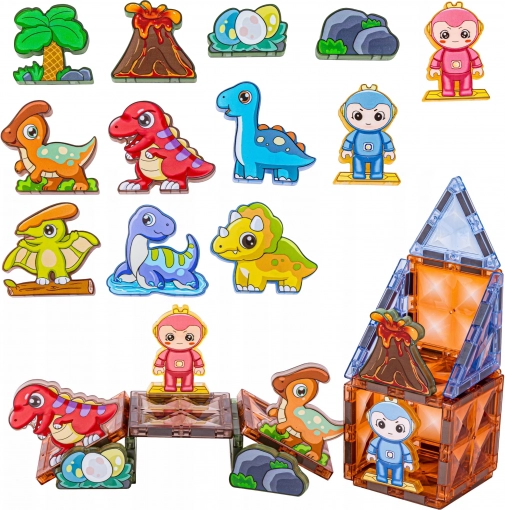 Vytvorte spoločne jedinečný praveký svet. Magnetické dieliky sa ľahko spájajú, držia pevne a efektne žiaria v tme, čo dodáva stavaniu nový rozmer. Deti si postavia ohrady, sopky aj dinosauří útočiská a pri hre prirodzene rozvíjajú priestorovú predstavivosť a logické myslenie.