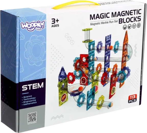 Objavte svet tvorenia a fyziky s kreatívnou stavebnicou WOOPIE: magnetická guľôčková dráha so 113 dielmi. Priehľadné trubice, farebné dlaždice a silné magnety umožnia stavať stabilné viacúrovňové dráhy, na ktorých deti prakticky spoznajú gravitáciu a pohyb. Ideálne pre rozvoj logického myslenia, priestorovej predstavivosti a jemnej motoriky – hodiny zmysluplnej zábavy pre deti od 3 rokov.