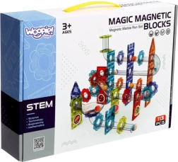 Objavte svet kreativity s magnetickou stavebnicou 3D WOOPIE so 113 dielmi, ktorá kombinuje guľôčkovú dráhu a priestorové stavby. Priehľadné magnetické dlaždice a pestré prvky zaisťujú hodiny zábavy, rozvíjajú logické myslenie, priestorovú predstavivosť a jemnú motoriku, a zároveň učia základy fyziky a gravitácie.