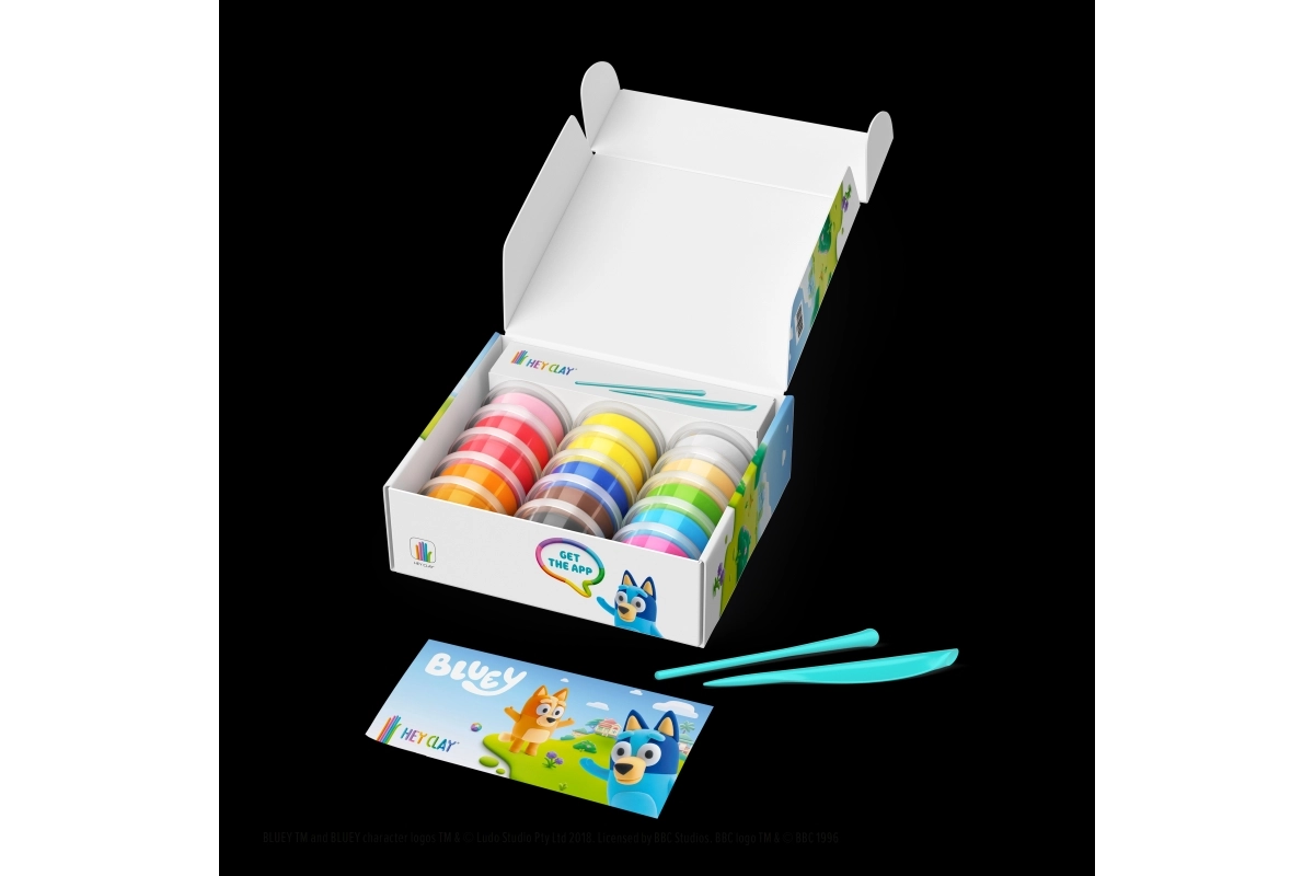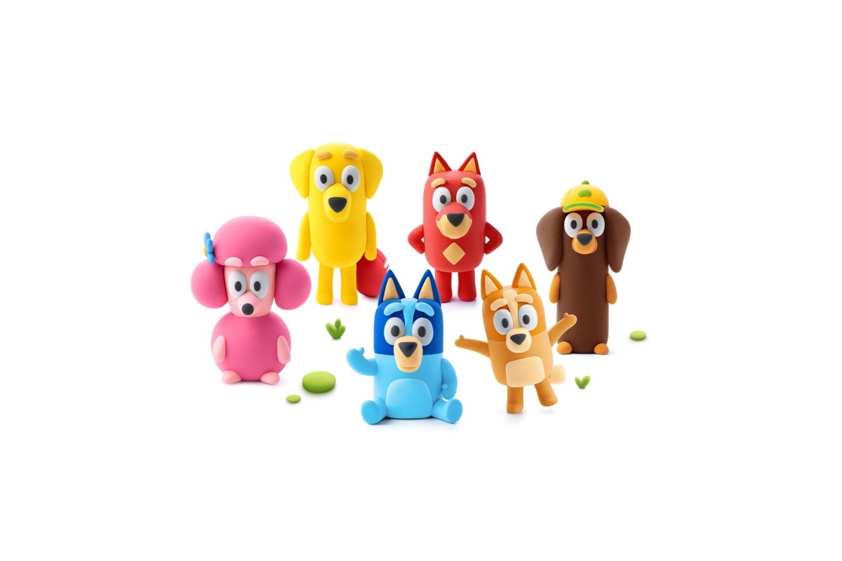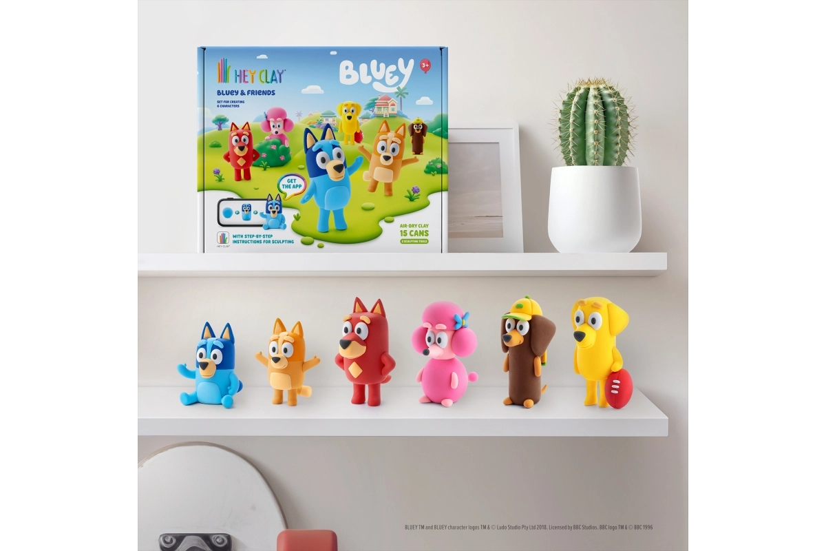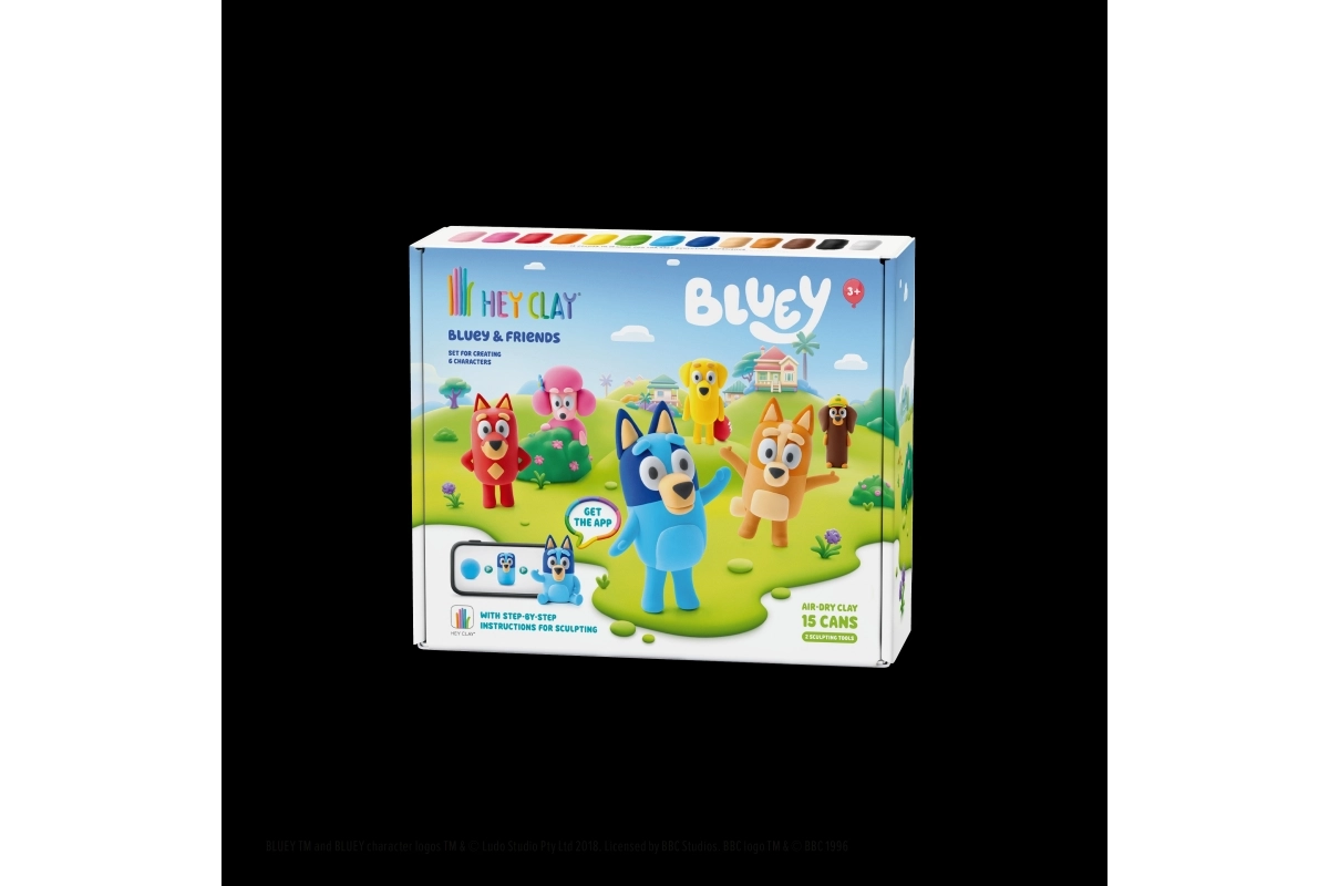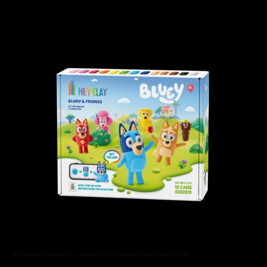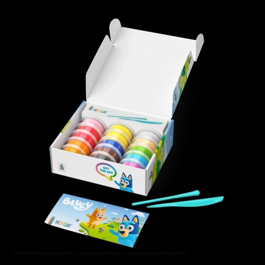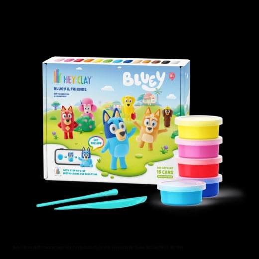 Objavte kreatívny svet s modelovacou hmotou HEY CLAY a sadou Bluey a priatelia. Vytvorte si celú šesticu obľúbených postavičiek – Bluey, Bingo, Luckyho, Snickerse, Coco a Rustyho – pomocou farebnej, ľahkej hmoty a interaktívnych návodov v aplikácii. Hotové figúrky po vyschnutí stvrdnú a sú skvelé na hranie aj zbieranie.