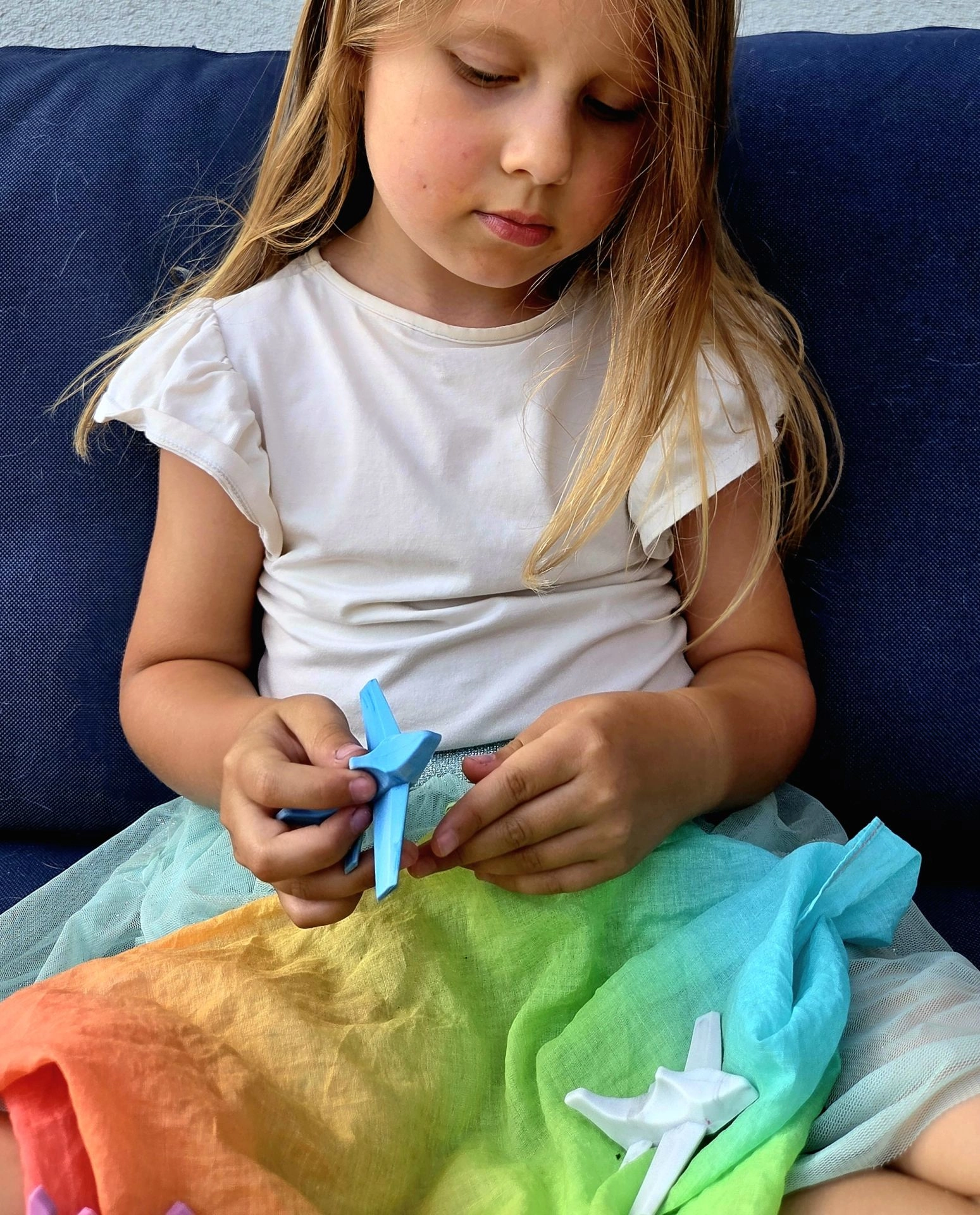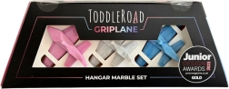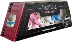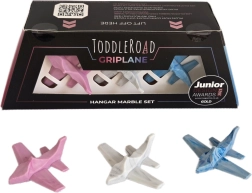 Sada Hangár Marble je ideálnym doplnkom k sade Letisko a prináša deťom radosť zo slobodnej, bezpečnej a fantazijnej hry. Tri silikónové lietadlá v jemných pastelových farbách s efektným mramorovaním skvele padnú do detskej ruky a vďaka príjemnému materiálu podporujú zmyslové vnímanie.