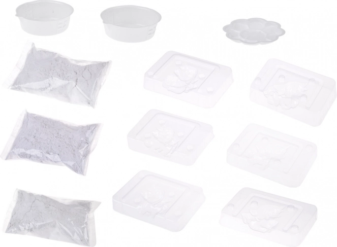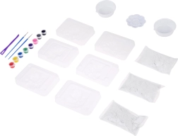 Obsah balenia: 3 vrecúška sadry, 3 formy na jednorožca, 2 odmerky, 1 paletka/miska na miešanie farieb, 8 farieb, 2 štetce, 1 plastový nožík. Tip: pre hladký odliaty povrch miešajte sadru do úplného rozpustenia a formu jemne poklepte, aby unikli vzduchové bublinky.