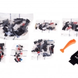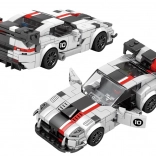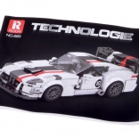 Technická stavebnica supersportového vozidla v bielej farbe s výrazným čierno‑červeným pruhom od kapoty cez strechu až po spojler ponúkne skvelý zážitok zo stavania aj pôsobivý výsledný model. Dlhé proporcie, nízka karoséria a masívne blatníky podčiarkujú muskulárny, pretekársky vzhľad.