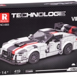 Poskladajte si ikonický model supersportu inšpirovaný americkou klasikou. Sada obsahuje 419 dielikov, bielu karosériu s čierno‑červeným pretekárskym pruhom a výrazný zadný spojler. Ideálne pre fanúšikov technických stavebníc a milovníkov automobilov vo veku 14+.