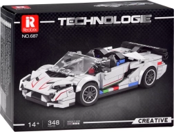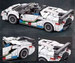 Postavte si vlastné biele supersportové kabrio so spojlerom z 348 dielikov. Model zaujme aerodynamickým dizajnom, nízkym profilom a športovými kolesami. Ideálne pre fanúšikov technických stavebníc a modernej automobilovej estetiky – stredne náročné skladanie pre vek 14+.
