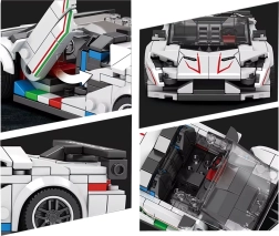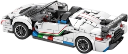 Táto technická stavebnica poteší každého nadšenca rýchlych áut a prepracovaných konštrukcií. Biele kabrio s agresívnymi líniami a výrazným zadným krídlom pôsobí ako skutočný supersport – perfektné do vitríny aj na poličku zberateľa.