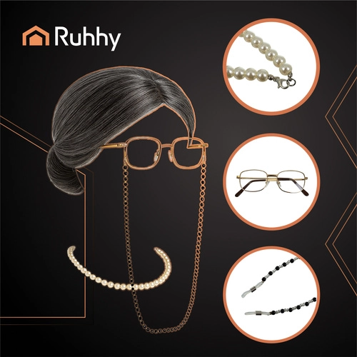 Zábavný kostým babičky RUHHY vám vyčarí okamžitú retro premenu. Súprava obsahuje šedú parochňu do drdola, čepiec, okuliare s reťazou a perlový náhrdelník. Vďaka univerzálnej veľkosti a nízkej hmotnosti sa pohodlne nosí a je ideálny na Halloween, maškarný aj tematické večierky.