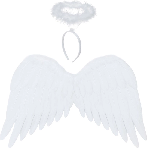 Ľahké biele anjelské krídla s hebkou pusinkovou aureolou na čelenke sú ideálne pre kostým anjela, víly či fantasy postavy. Vďaka elastickým gumičkám sa pohodlne nosia a ich pierkové prevedenie vyzerá realisticky naživo aj na fotografiách. Skvelé na karneval, Halloween, detské vystúpenia aj fotografovanie a môžu poslúžiť aj ako štýlová dekorácia do izby.