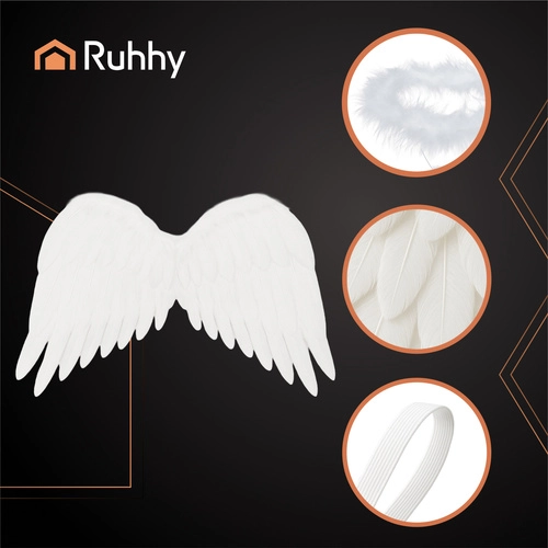 Táto 2‑dielna sada RUHHY zahŕňa biele anjelské krídla a pružnú čelenku s aureolou. Krídla majú ľahkú konštrukciu s pierkovým povrchom imitujúcim skutočné pierka, takže pôsobia jemne a elegantne. Vďaka elastickým popruhom ich ľahko nasadíte a bezpečne držia aj pri dlhšom nosení.