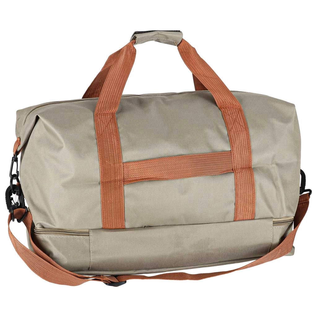 Praktická cestovná taška v elegantnej béžovej farbe ponúka samostatnú spodnú komoru na obuv, odnímateľný a nastaviteľný ramenný popruh a odolný materiál Oxford 600D. Skvele poslúži ako príručná batožina do lietadla aj taška do posilňovne.
