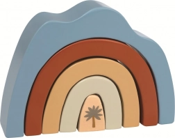 Tento kvalitný drevený hrací set 4 v 1 ponúka deťom pestré aktivity: posúvanie korálikov v labyrinte, triedenie tvarov do valca, skladanie dúhových oblúkov podľa veľkosti aj objavovanie prvkov na activity boarde. Hračky v jemných pastelových farbách s rozkošnými motívmi podporujú sústredenie, trpezlivosť a prirodzenú zvedavosť.