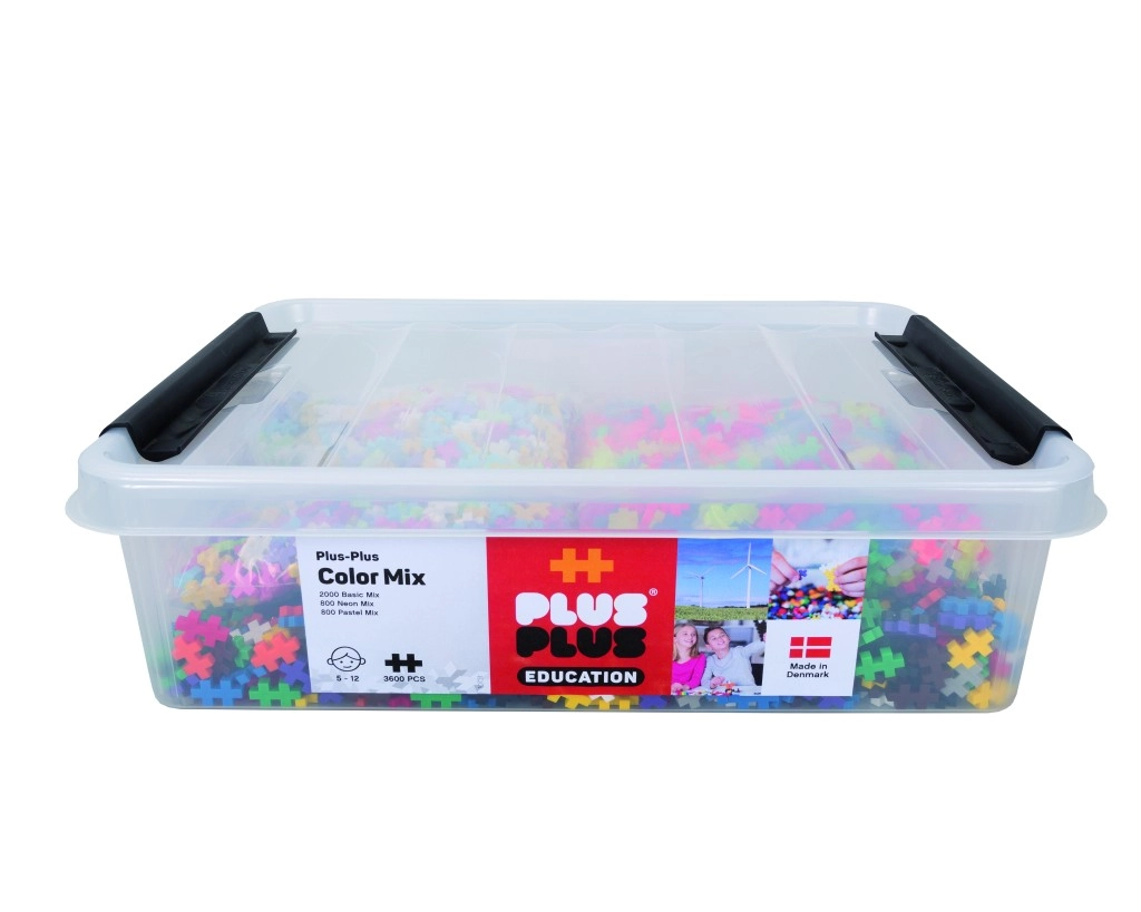 Veľký kreatívny set Plus-Plus v praktickom úložnom boxe pre malých aj veľkých staviteľov. Obsahuje celkom 3600 dielikov v základných, neónových a pastelových farbách, plus brožúru s návodmi a úlohami. Vyrobené v Dánsku z recyklovaného plastu bez ftalátov, jednoduchá údržba. Ideálne pre materské školy, družiny a krúžky, vhodné od 5 rokov.