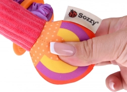 Mäkké textílie a rebrovaná rukoväť uľahčujú držanie a trasenie, čím podporujú jemnú motoriku aj koordináciu ruka–oko.