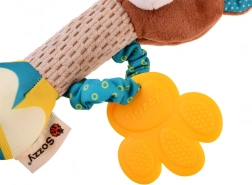 Silikónové hryzátko s masážnymi výstupkami uľavuje pri prerezávaní zúbkov, zatiaľ čo mäkký plyš a ryhovaná rukoväť uľahčujú držanie malými rúčkami. Hračka je ľahká, bezpečná a ideálna na cesty aj domáce mojkanie.
