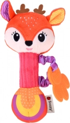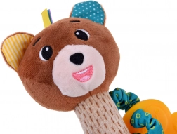 Roztomilá hrkálka so zvieratkom spája mäkučký plyš s bezpečným silikónovým hryzátkom pre citlivé ďasná. Ponúka jemné zvuky, šuštiace ušká a ľahký, ľahko uchopiteľný tvar, ktorý podporuje rozvoj zmyslov a jemnej motoriky už od prvých mesiacov.