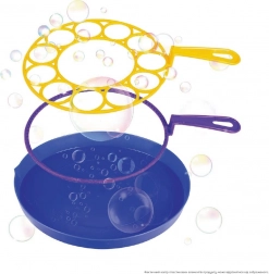 Špeciálna obrúčka na veľké bubliny vytvára jednoliate a pevné bubliny, ktoré sa krásne trblietajú a dlho vydržia vo vzduchu.