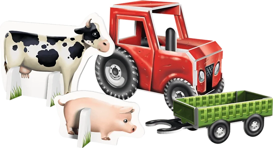 Súčasťou sú stojančeky s traktorom a zvieratkami, ktoré dodajú hre fantáziu a pohyb. Ideálne pre tematické scénky a role-play.