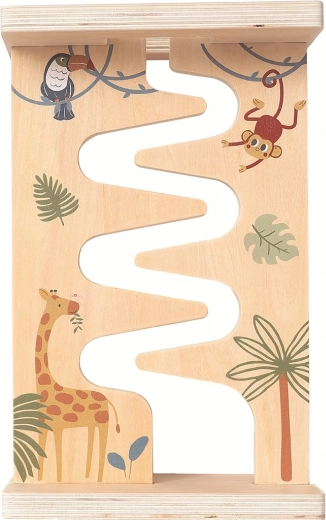 Zábavný drevený labyrint pre najmenších poteší každého malého objaviteľa. Deti vedú drevené kolieska s obrázkami zvieratiek vyrezanou dráhou a pritom si trénujú jemnú motoriku, koordináciu ruka-oko a logické myslenie. Farebné motívy prírody a zvieratiek zaujmú na prvý pohľad a hračka je bezpečná a vhodná od 18 mesiacov.