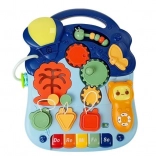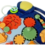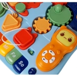Otáčacie ozubené kolieska, posúvače, tvary na šnúrkach a stláčacie tlačidlá trénujú úchop, koordináciu oko–ruka aj logické myslenie.