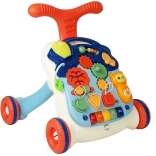 Viacúčelové detské chodítko 3 v 1 kombinuje tlačidlové chodítko, odnímateľný vzdelávací panel a stolík na hranie. Podporuje prvé krôčiky, rozvoj jemnej motoriky, zmyslovú stimuláciu aj učenie tvarov, písmen a čísiel. Stabilná konštrukcia s možnosťou zablokovania zadných kolies a zaťažením nádržky vodou pre väčšiu istotu. Panel ponúka pianínko Do-Re-Mi, otáčacie ozubené kolieska, tlačidlá a posúvače, svetelné efekty a odnímateľný telefón so zvukmi.