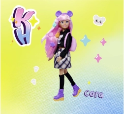 Bábika Kawaii Hi Cora prináša svet farieb, módy a fantázie. Vďaka mimoriadne dlhým vlasom, rozkošnému miláčikovi Kurumi a bohatej sade doplnkov si deti užijú hodiny kreatívnej zábavy – od česania a zdobenia až po vytváranie vlastných módnych príbehov.