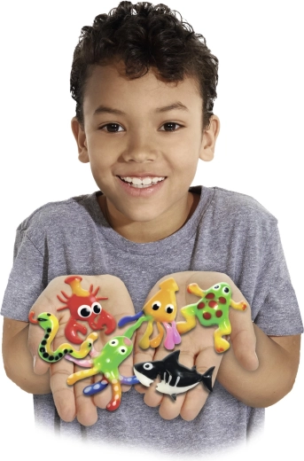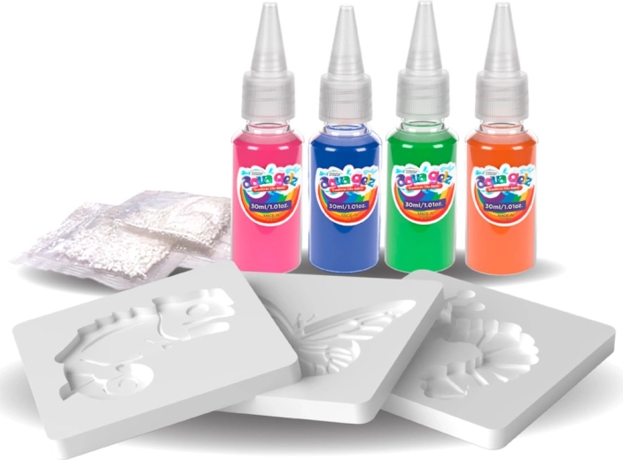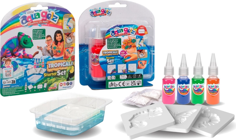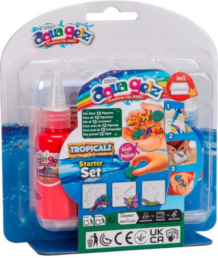 Objavte hravé tvorenie s AQUA GELZ – zábavnou sadou, vďaka ktorej deti ľahko vytvárajú farebné gélové postavičky. Zmiešajte špeciálny prášok s vodou, vyberte formičku, vyplňte ju farebnými gélmi a krátko ponorte. O chvíľu sa plochý obrázok zmení na mäkučkú 3D figúrku, ktorá sama vykĺzne z formy.