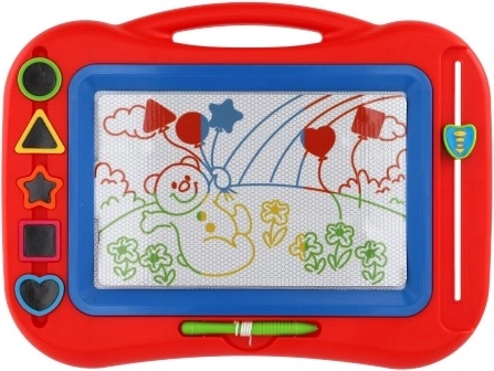 Premeňte každý nápad na obrázok – táto farebná magnetická tabuľka umožňuje deťom kresliť, pečiatkovať a skúšať nové tvary znova a znova. Stačí prejsť mazaacou lištou a plocha je behom chvíľky čistá. Ideálna na doma, do škôlky aj na cesty – bez farieb, papierov a škvŕn.