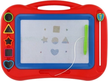 Súčasťou je magnetické pero na šnúrke a 5 tvarových pečiatok. Deti ľahko vytvárajú hviezdičky, krúžky a ďalšie tvary, ktoré rozvíjajú kreativitu aj motoriku.