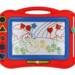 Magnetická plocha s posuvnou mazaacou lištou zaistí, že každý nový obrázok začína na čistej stránke – bez papiera a bez neporiadku.