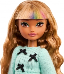 Praktické doplnky – hrebeň, „lak na vlasy“, „kulma“, telefón v puzdre, hviezdna kabelka a knižka – podporujú fantáziu a rozvoj jemnej motoriky. Outfit s mätovým svetríkom s mašličkami, lesklou čiernou sukňou a členkovými topánkami dopĺňajú realistické detaily, ktoré deti milujú.