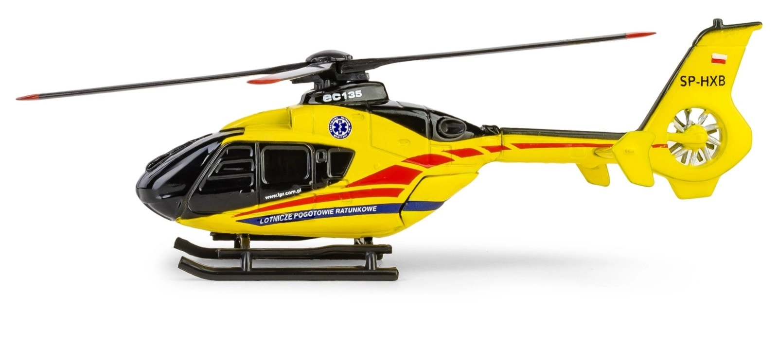 Tento licencovaný model verne zobrazuje vrtuľník AIRBUS EC135 používaný leteckou záchrannou službou. Precízna potlač a autentické označenie zodpovedajú reálnemu sfarbeniu, vďaka čomu model skvele vynikne v zbierke aj na pracovnom stole.