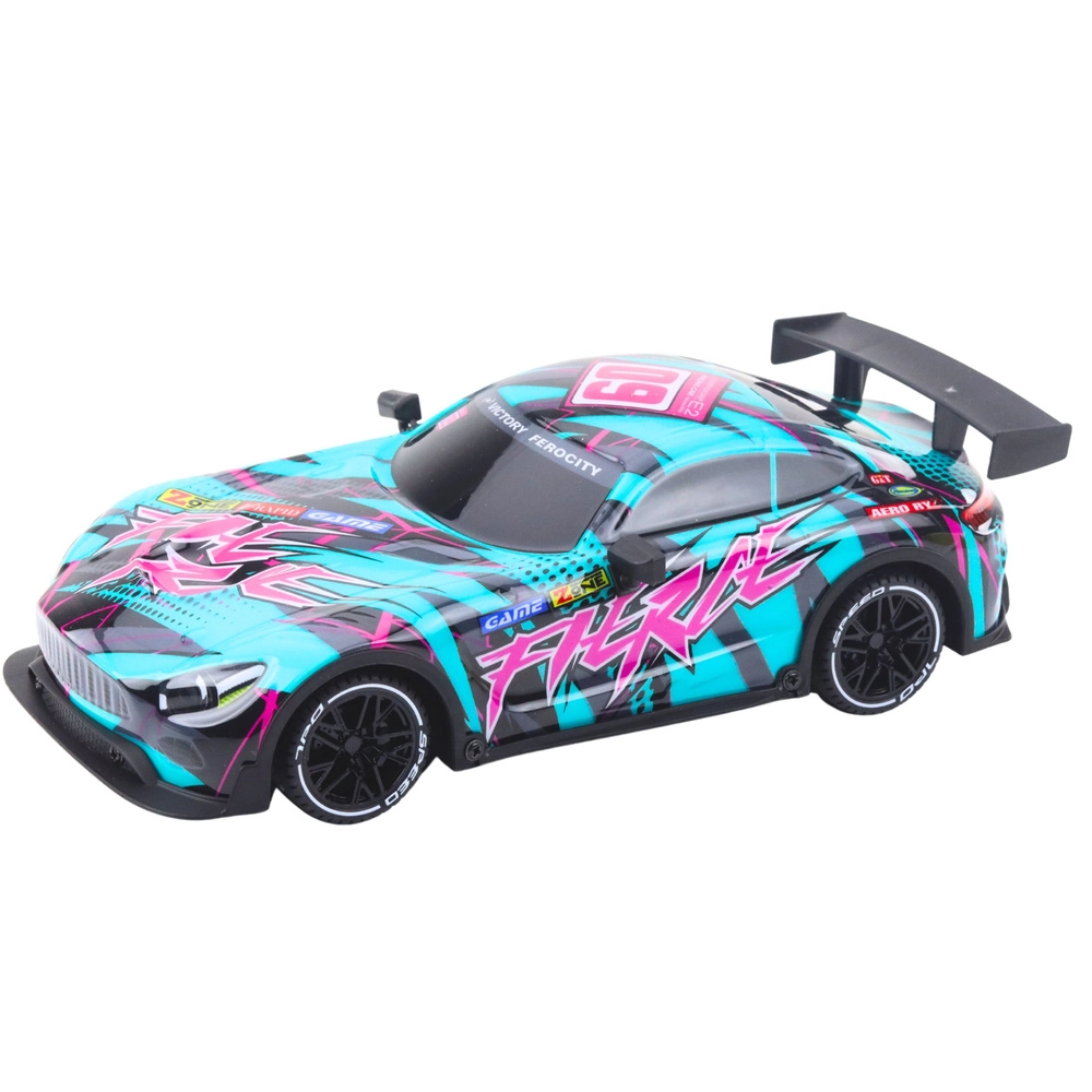 Model je ľahký, ľahko ovládateľný a pripravený na jazdu behom chvíľky – stačí vložiť batérie do auta aj ovládača. Športová silueta a kontrastné ružové akcenty dodávajú autu atraktívny vzhľad, ktorý zaujme na prvý pohľad.