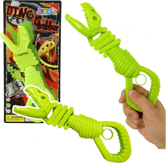 Zábavná a interaktívna hračka pre deti – zelený uchopovač v tvare dinosauří kostry. Po stlačení rukoväte sa čeľuste zatvoria a bezpečne uchopia predmet, čo podporuje jemnú motoriku, koordináciu pohybov a kreatívnu hru. Vyrobené z odolného plastu pre dlhú a bezpečnú zábavu.