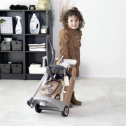 Súčasťou setu je bohaté príslušenstvo: lopatka a metlička, mop, kefka, vedierko a makety čistiacich prostriedkov. Všetko má svoje miesto na praktickom pojazdnom vozíku s rukoväťou a organizérmi, takže sa deti učia poriadku a zodpovednosti formou hry.