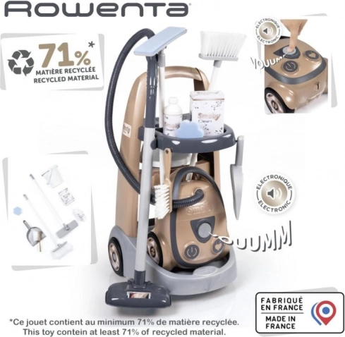 Tento štýlový upratovací vozík s licenciou ROWENTA premení domáce upratovanie na obľúbenú hru. Deti môžu vďaka realistickému vysávaču so skutočným zvukom napodobňovať dospelých, zatiaľ čo ergonomicky tvarované nástroje presne padnú do detských rúk. Ľahká a jednoducho ovládateľná konštrukcia umožní bezpečnú manipuláciu aj menším deťom.