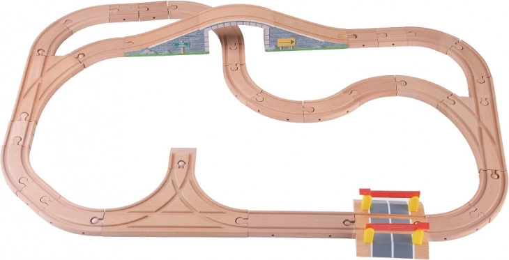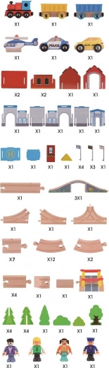 Vďaka univerzálnym dreveným spojom je set kompatibilný s väčšinou bežných drevených vláčkodráh. Pevné prevedenie z dreva doplnené o kovové prvky a magnetické spájanie vagónov zabezpečuje ľahkú manipuláciu aj pre menšie deti. Sada je pripravená na okamžitú hru – stačí poskladať koľaje, rozmiestniť doplnky a vyraziť na cestu.