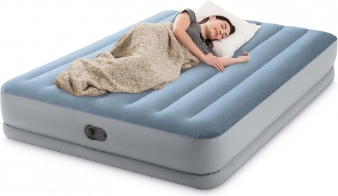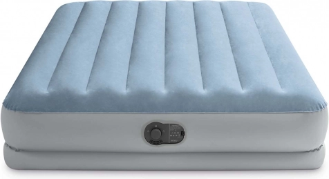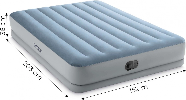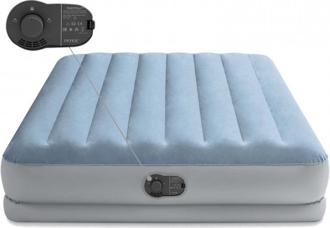 Praktická nafukovacia posteľ INTEX je ideálna ako dočasné lôžko pre hostí, na chatu aj cestovanie. Vyvýšená konštrukcia uľahčuje líhanie a vstávanie, zatiaľ čo velúrový povrch je príjemný na dotyk a bráni kĺzaniu prestieradla. Integrovaná elektrická pumpa zaistí pripravené lôžko približne za 3 minúty a rovnako rýchlo aj vyfúknutie.