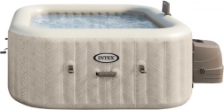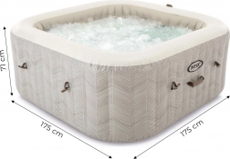 Nafukovacia vírivka INTEX premení záhradu, terasu aj interiér na súkromné kúpele. Priestranný interiér pre 4 osoby a elegantný béžový dizajn skvele zapadne do moderného prostredia. 140 bublinových trysiek uvoľní svalové napätie a podporí regeneráciu po náročnom dni, zatiaľ čo ohrev až na 40 °C zaistí dokonalé pohodlie v každom ročnom období.