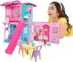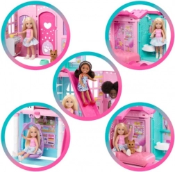 Objavte čarovný svet fantázie s rozkladacím domčekom pre bábiku Chelsea od značky Barbie! Tento farebný set sa po otvorení premení na veľký dom s viac než piatimi hernými zónami – od obývačky s hojdacím kreslom, cez kuchyňu s otváracou rúrou, až po spálňu, kúpeľňu a zábavnú šmykľavku. Súčasťou sú aj bábika Chelsea, jej psík a množstvo doplnkov pre nekonečné príbehy.