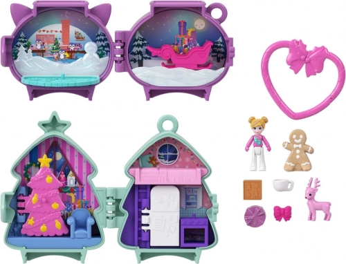 Objavte sviatočné kúzlo s dvojicou kompaktných setov POLLY POCKET, ktoré sa otvárajú do zimnej ríše a hrejivého domova. Každý set je navrhnutý na hranie doma aj na cestách – uzavierateľný dizajn, šikovné úložné priestory a srdiečkový klips zaručujú, že zábava bude vždy poruke.