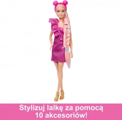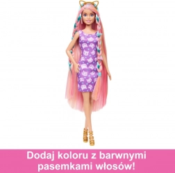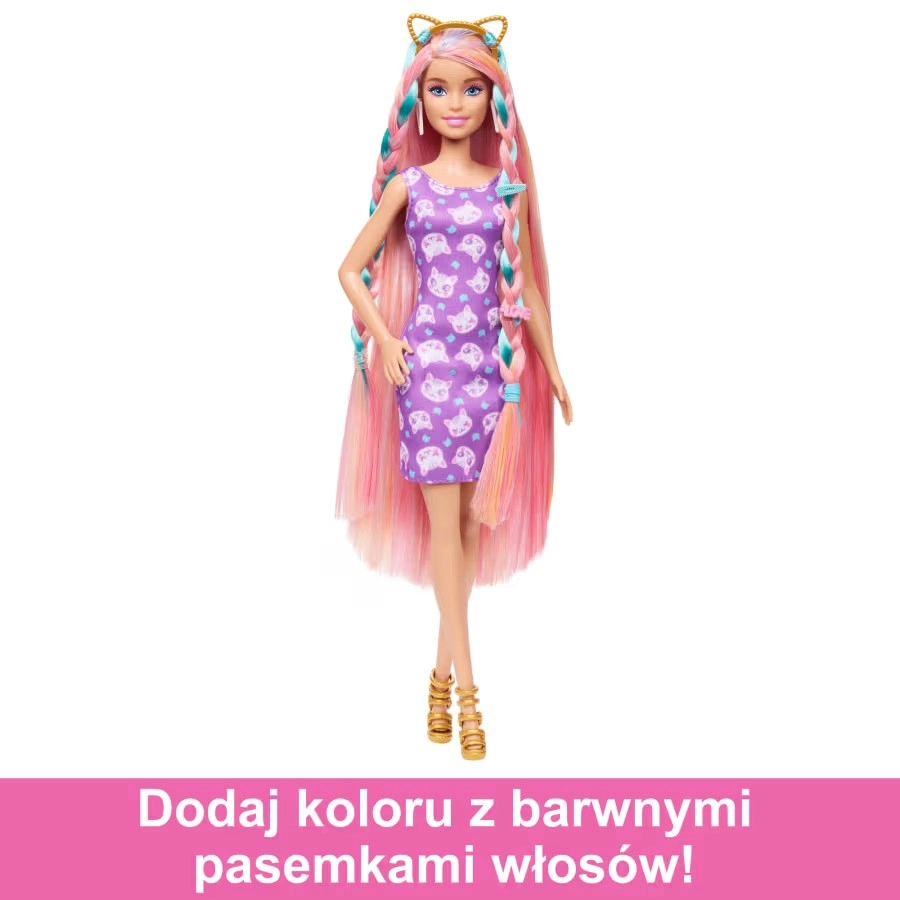 Objavte svet štýlu s bábikou BARBIE Hra s vlasmi. Vďaka veľmi dlhým blond vlasom s farebnými pramienkami a bohatej sade doplnkov môžu deti tvoriť účesy od roztomilých drdolov až po nápadité vrkôčiky. Štýlovanie ľahko doplnia trblietavé mini šaty, vymeniteľné lodičky na podpätku a kabelka.
