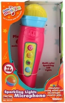 S mikrofónom, ktorý obsahuje 6 nahraných melódií, si deti užijú more zábavy. Pri spievaní môžete zapnúť aj tlačidlo pre potlesk alebo sprievodný zvuk. Táto hračka rozvíja detskú zručnosť, rytmus, hudobný talent a sluch. Mikrofón tiež svieti. Batérie 2x AAA nie sú súčasťou balenia.
