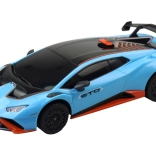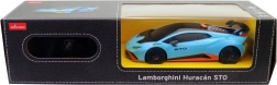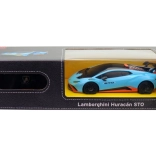 Detailná karoséria LAMBORGHINI Huracán STO s aerodynamickým krídlom, športovými kolesami a vernými líniami pre maximálny zážitok z jazdy aj vystavenia.